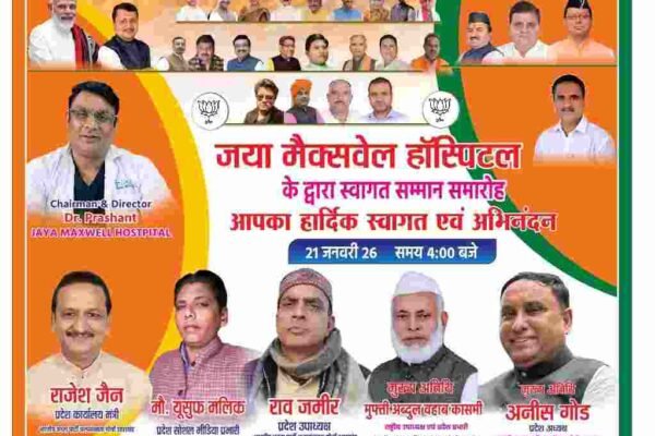 जया मैक्सवेल अस्पताल में स्वागत–सम्मान समारोह आयोजित, अल्पसंख्यक मोर्चा व भाजपा नेताओं का हुआ अभिनंदन हरिद्वार। जया मैक्सवेल अस्पताल, बहादराबाद हरिद्वार में बुधवार को एक भव्य स्वागत–सम्मान समारोह का आयोजन किया गया। कार्यक्रम का उद्देश्य सामाजिक, राजनीतिक और जनसेवा से जुड़े प्रमुख व्यक्तित्वों का सम्मान कर स्वास्थ्य सेवाओं और समाज के बीच समन्वय को…