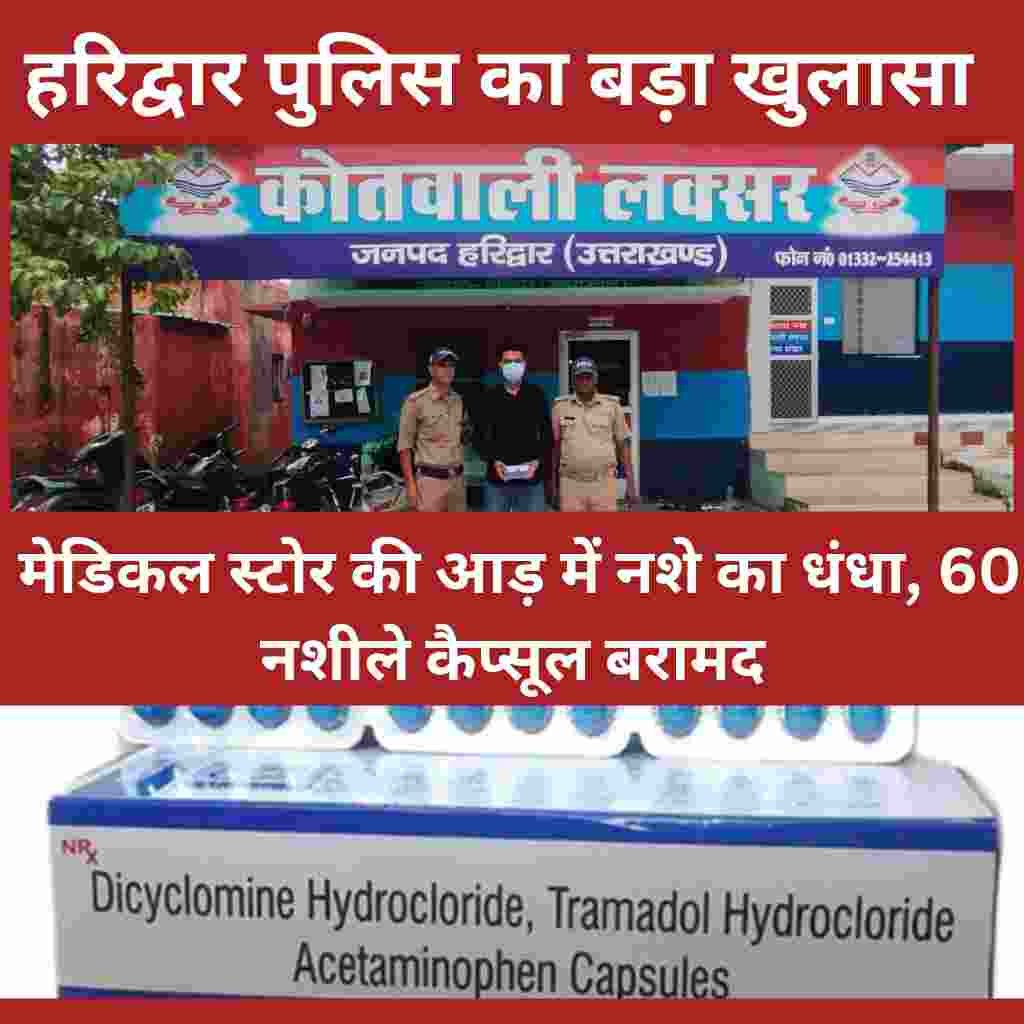 हरिद्वार पुलिस का बड़ा खुलासा: मेडिकल स्टोर की आड़ में नशे का धंधा, 60 नशीले कैप्सूल बरामद
