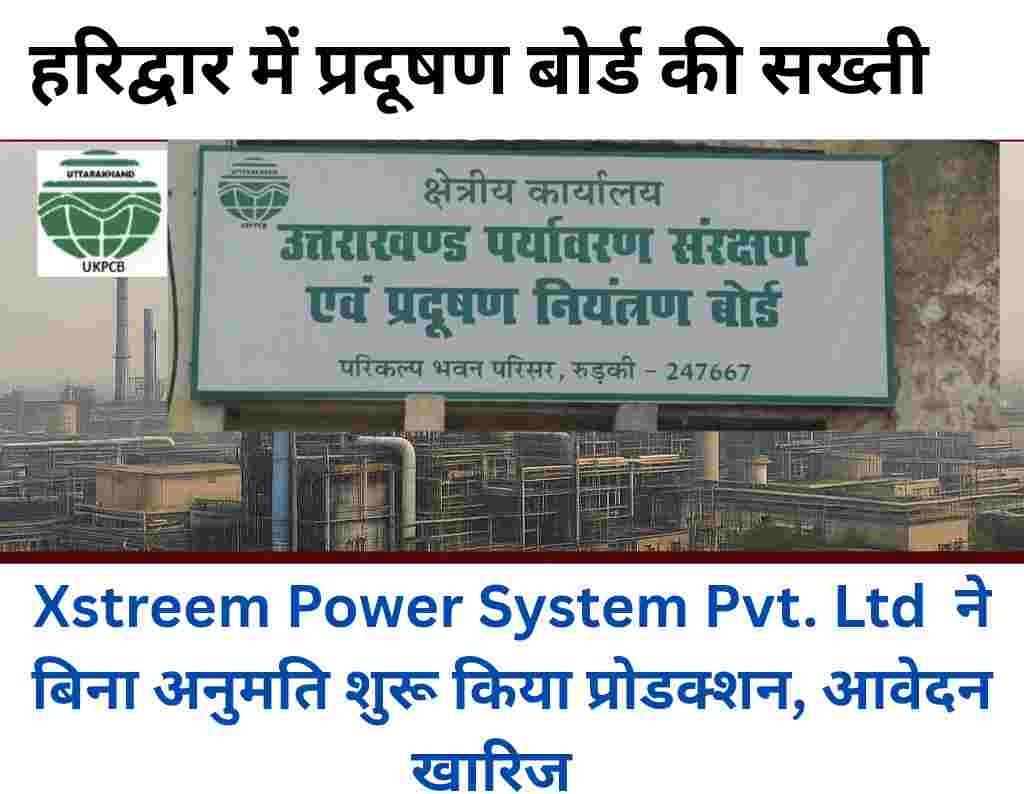 हरिद्वार  :-  हरिद्वार जिले के भगवानपुर क्षेत्र में  एक  कंपनी पर उत्तराखंड प्रदूषण नियंत्रण बोर्ड ने बड़ी कार्रवाई की है। M/s Xstreem Power System Pvt. Ltd. नाम की कंपनी ने बिना जरूरी अनुमति लिए ही उत्पादन शुरू कर दिया था। जांच के बाद बोर्ड ने कंपनी का आवेदन खारिज कर दिया और साफ कहा है कि अगर अब भी नियमों का पालन नहीं किया गया तो फैक्ट्री बंद कर दी जाएगी।