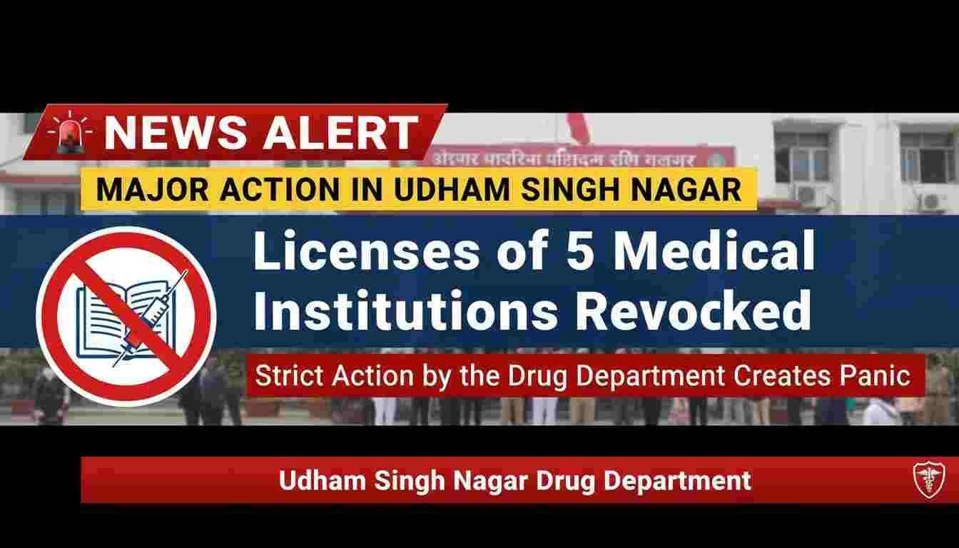 उधमसिंह नगर में बड़ा एक्शन: 5 मेडिकल संस्थानों के लाइसेंस निरस्त, ड्रग विभाग की सख्त कार्रवाई से मचा हड़कंप
